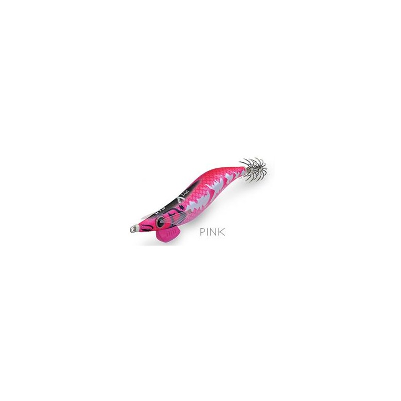 X egi es un jig de calamar con un diseño llamativo y llamativo y un patrón lateral blanco intenso. Este patrón tiene un efecto de brillo más fuerte que el resto del cuerpo. Los colores también reaccionan a los rayos UV.